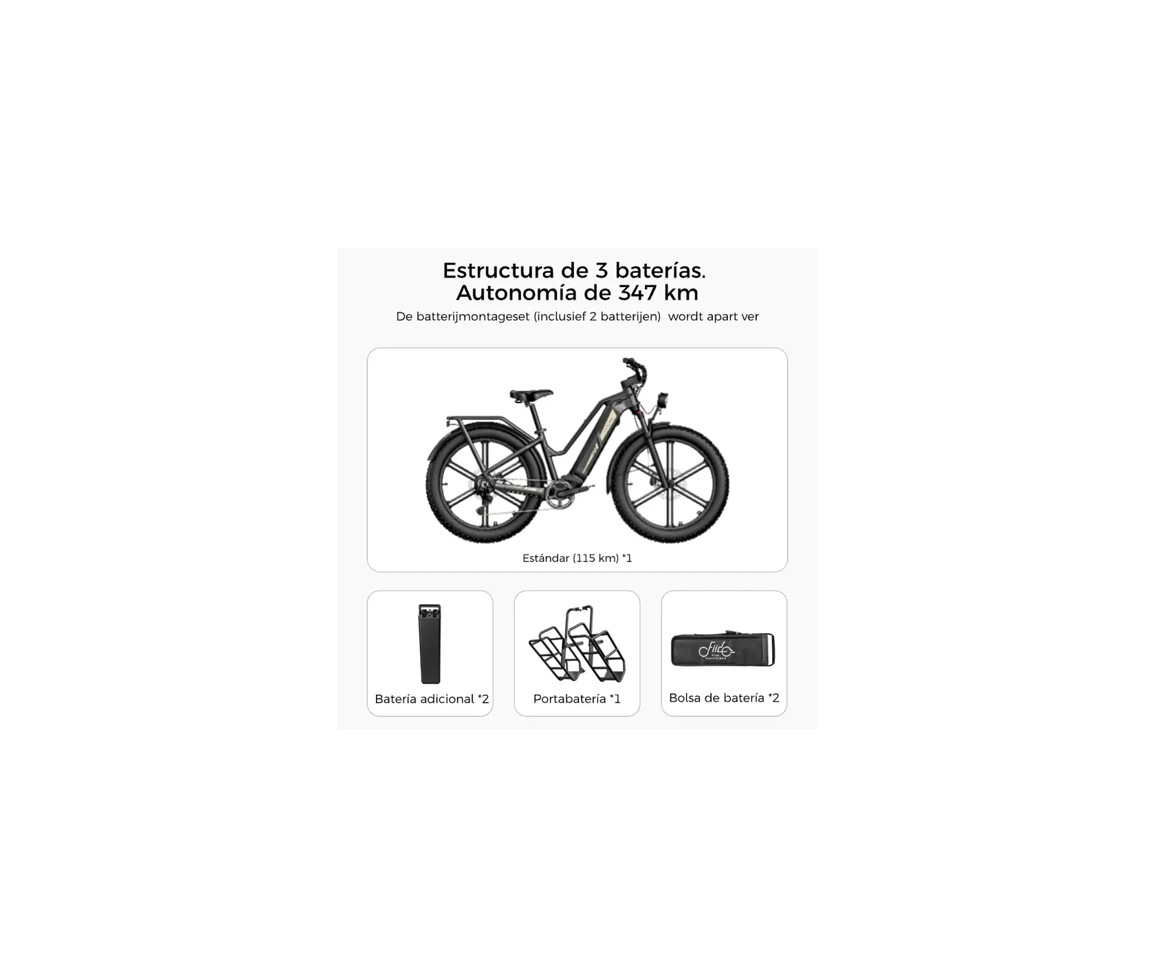 | Autonomía | Hasta 115 km (con una batería) / Extensible con más baterías |