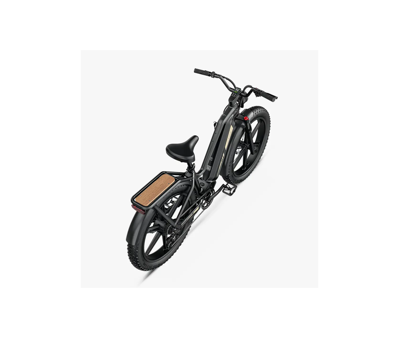 Equipada con neumáticos de 26x4.0 pulgadas, absorbe las irregularidades de cualquier terreno, mientras que sus frenos hidráulicos de 4 pistones aseguran una detención potente y segura incluso con 200 kg de carga. Al igual que otros modelos premium de Fiido, utiliza llantas de aleación de una sola pieza para evitar el mantenimiento de los radios.